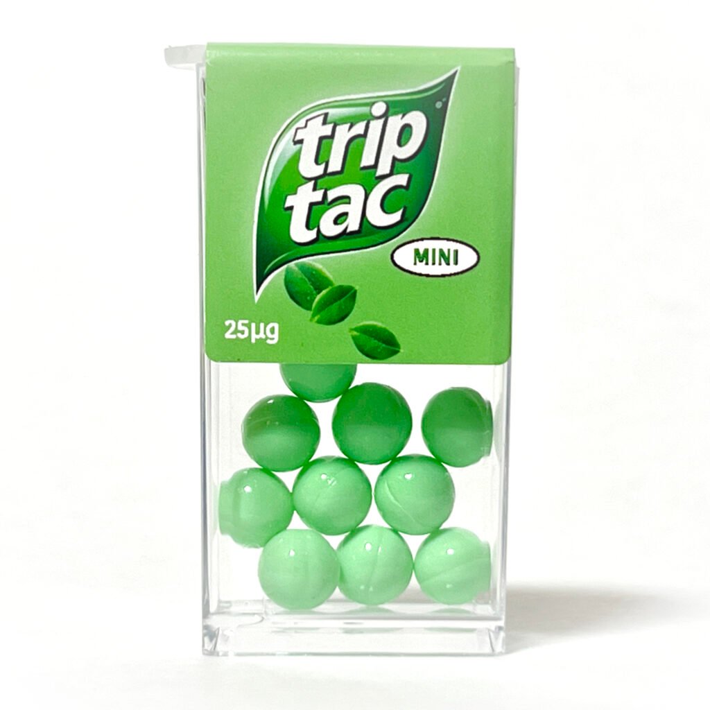 Dosage: One 300 MG Capsule – Best taken on an empty stomach – Pairs well with a cocktail (or two) – Perfect companion after a heroic dose of Trip Tacs.